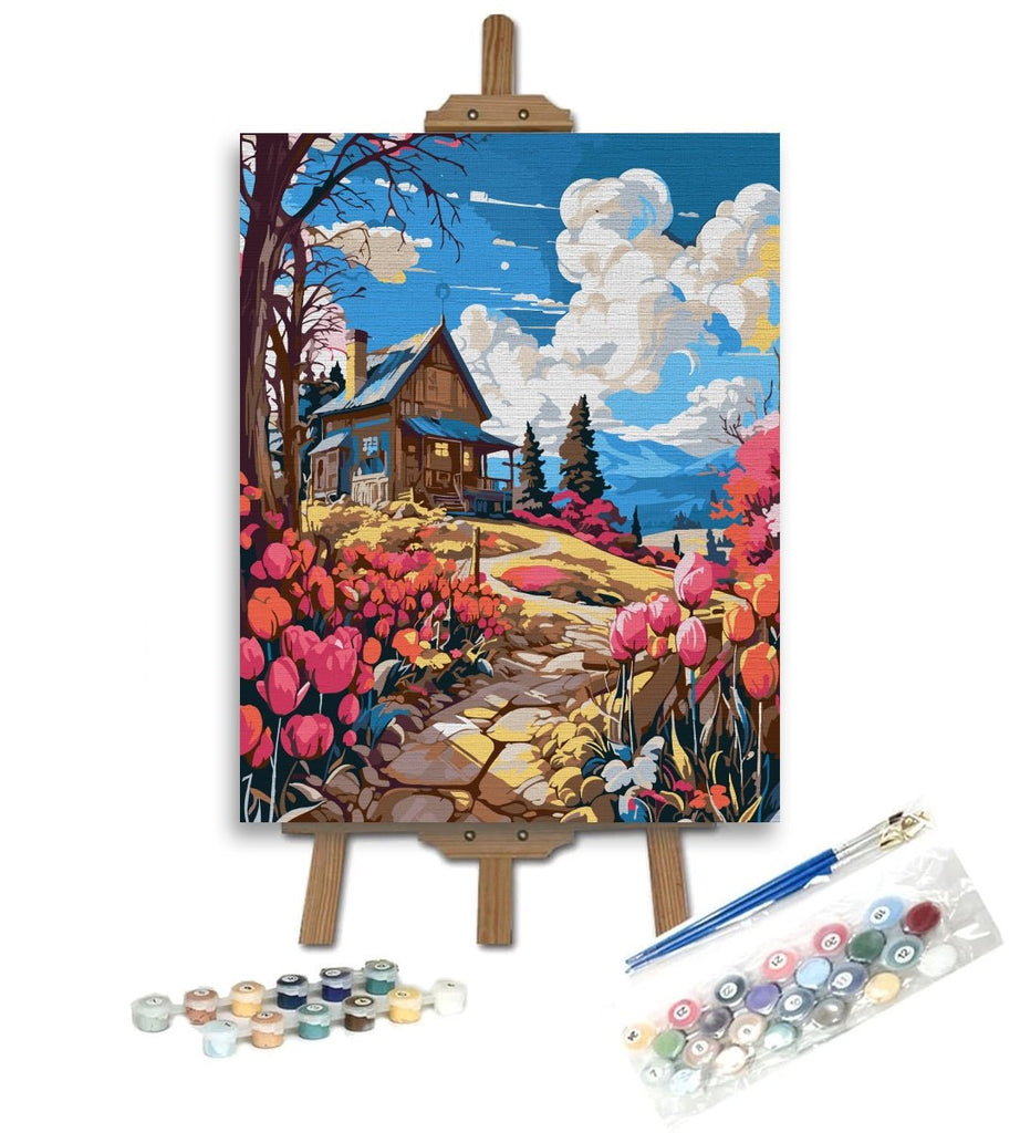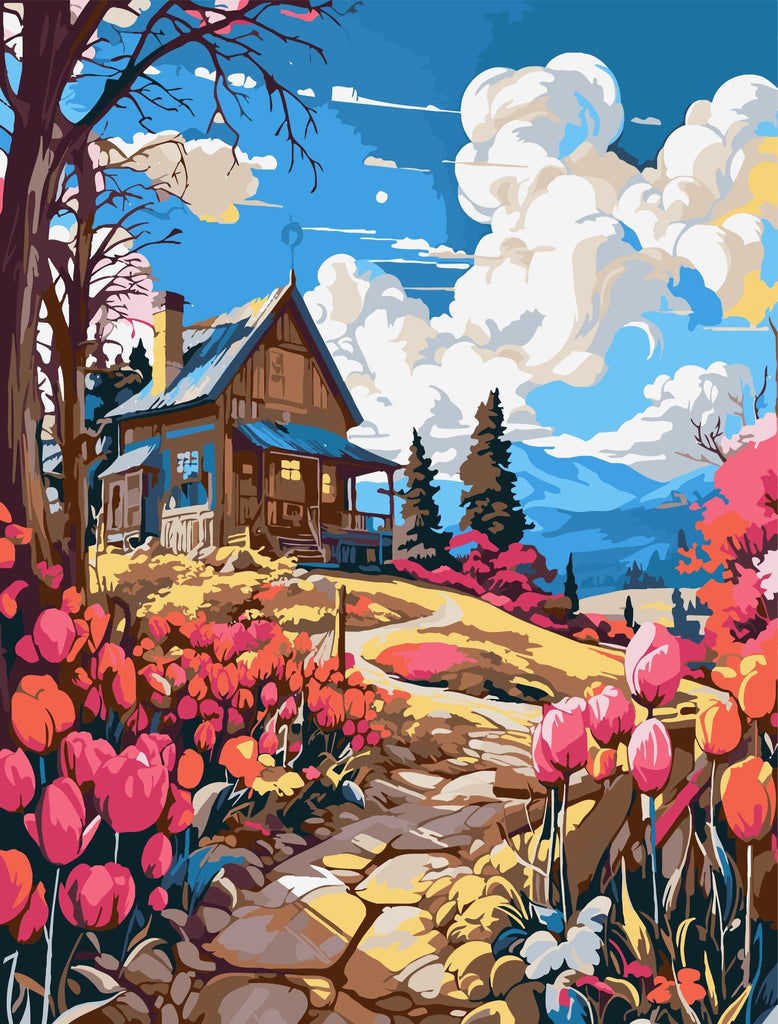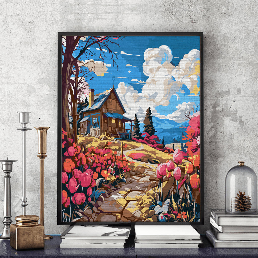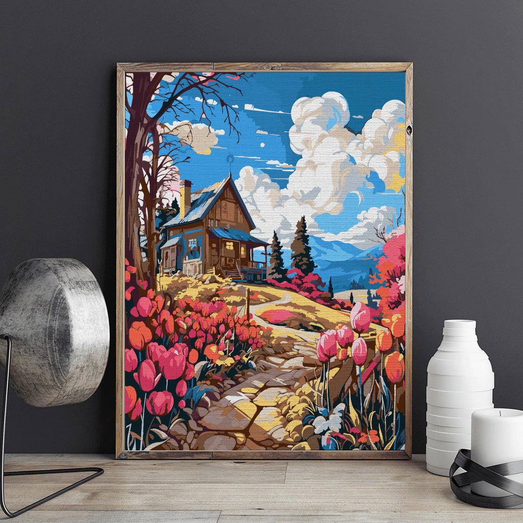 Uneori, tot ce îți dorești este să te refugiezi în natură, la capăt de lume. Cabană în natură este pictura pe numere ce aduce în prim plan locația aceea ideală, departe de agitație, de oraș, de stres.
