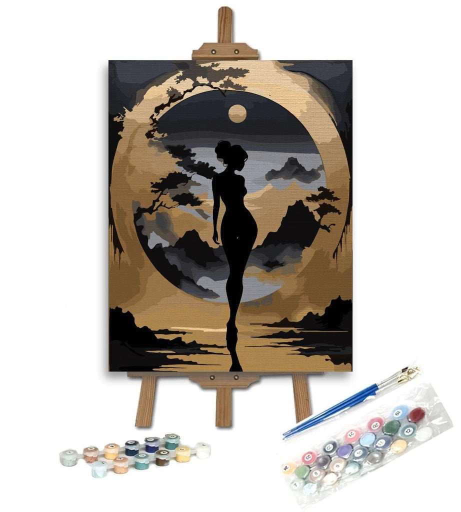 Tutorial pictare Femeia lunii - Pictură pe numere