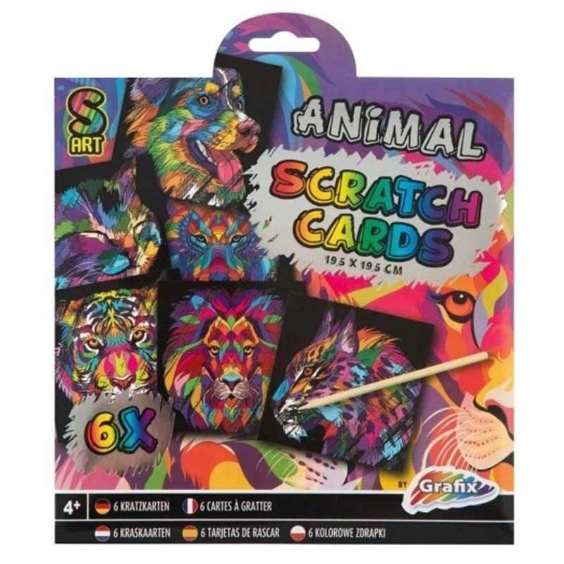 Set 6 cartoane de răzuit, animale colorate, Grafix, 4 ani +