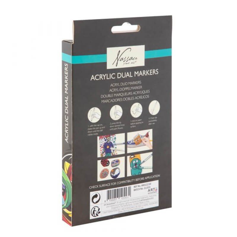 Set 6 markere acrilice Nassau Fine Art, vârf dublu, rezistente la apă