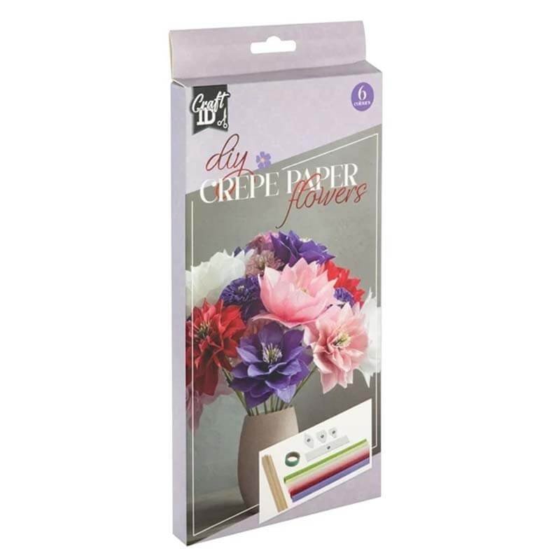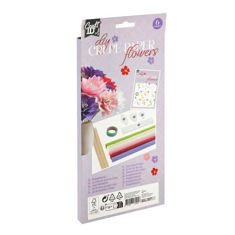 Set creativ Craft ID, confecționare flori din hârtie creponată, 6 culori, 20x25 cm